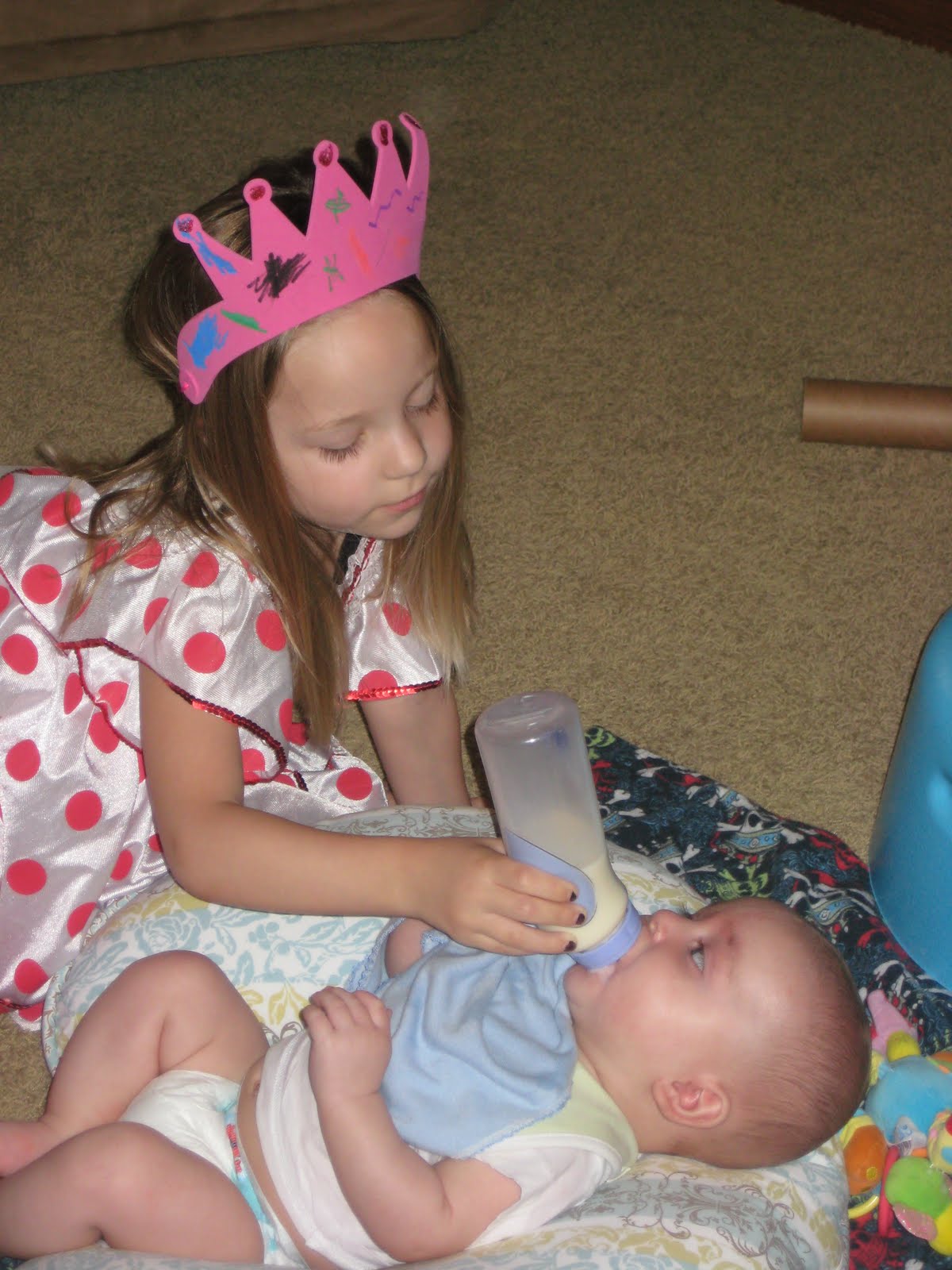 Princess Briley feeding Prince Briggs. She's such a big helper!